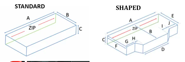 Shaped Mattress Dimension (A/B/C/D/E/F/G/H/I/J cm)